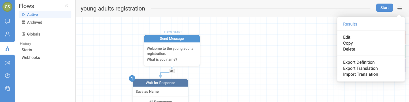 To export your flow results, simply choose the flow you'd like to view under the Flows tab, then click the ☰ menu icon in the upper right-hand corner, then select "Results":