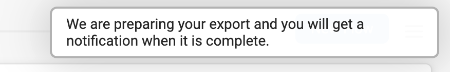 Once you click 'Export', you'll see a message at the top of the page letting you know the export can be found in your Notifications when ready.