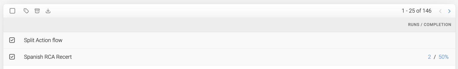 To export results from more than one flow, first navigate to the 'Flows' tab. From there, choose the desired flows from the list: